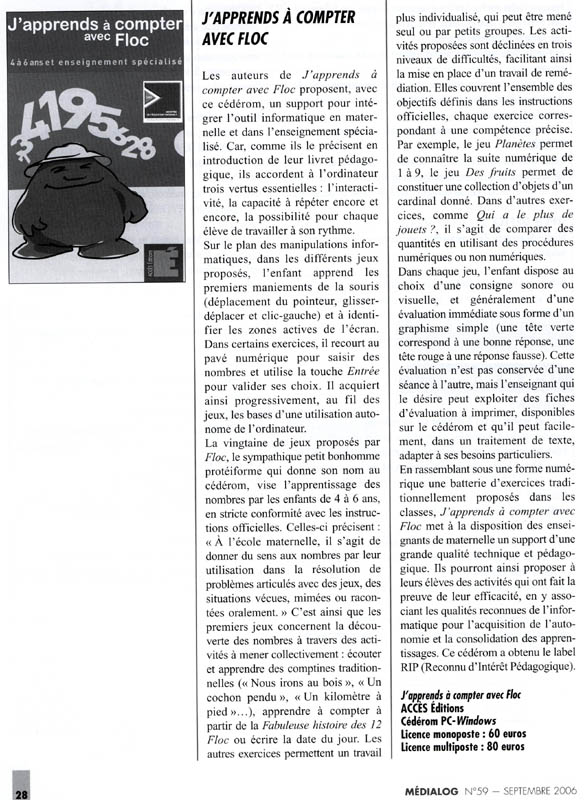 Article paru dans "MEDIALOG" n° 59, septembre 2006 Revue des technologies de l'information et de la communication dans l'enseignement, Académie de Créteil